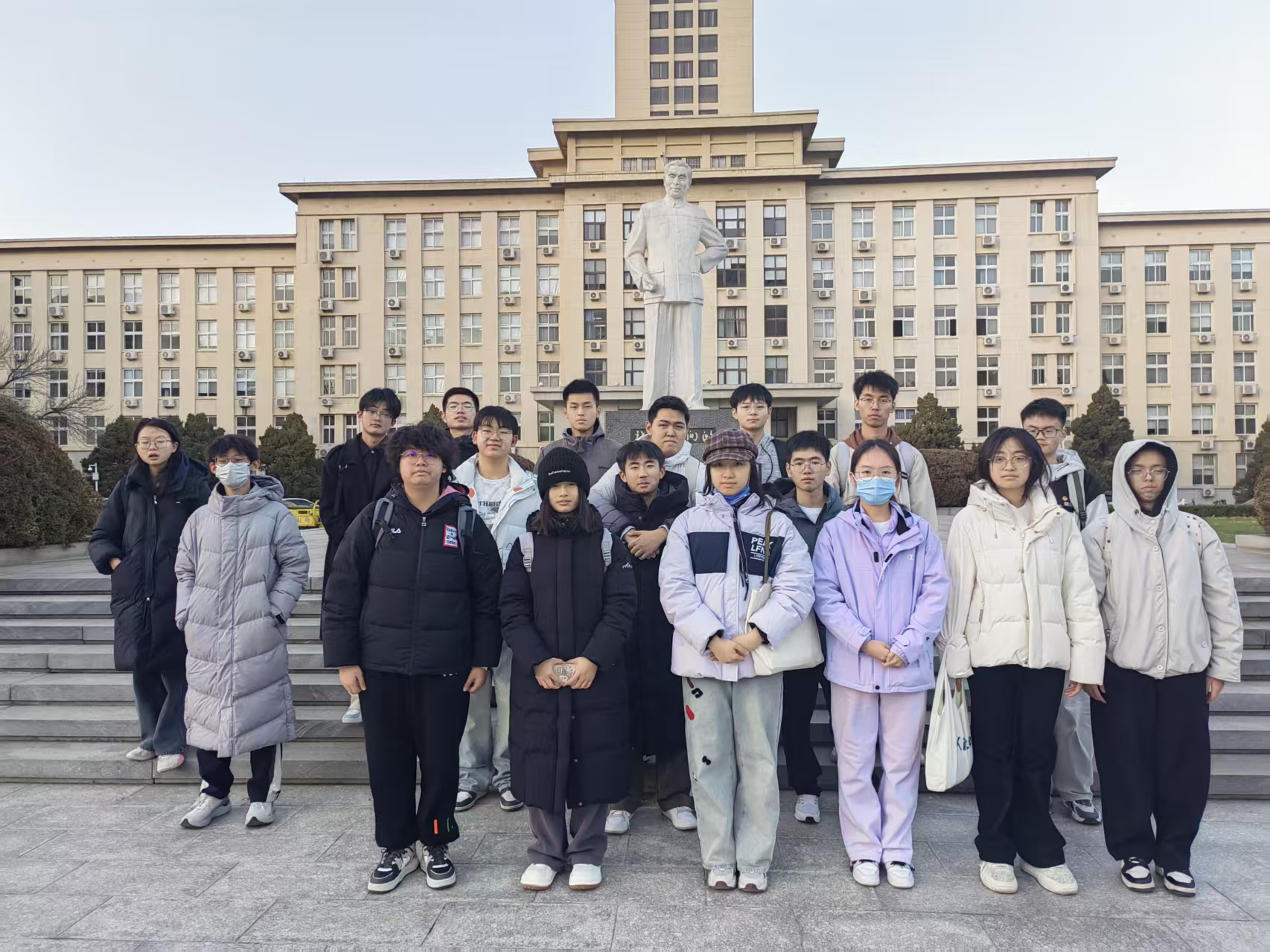 在周恩来总理像前,同学们一起回顾了周恩来总理“为中华之崛起而读书”的誓言与张伯苓校长的“爱国三问”,并在雕像前合影。先辈们的家国情怀深深感染着同学们,引领大家将报国之志,沉淀为扎根专业的笃学实干,淬炼成融入时代的责任担当。